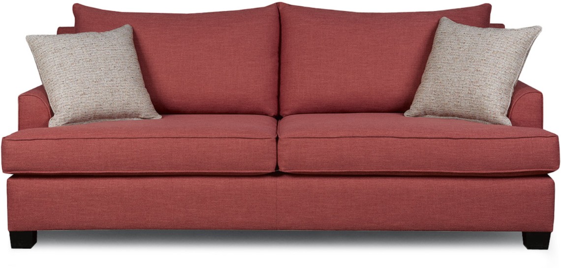 Knife-edge pillows add a fun and flirty design element. Two-over-two seating is modern and stylish. Loose-back cushions. Eco-friendly construction. Certified sustainable, kiln-dried wood frame. Soybased polyfoam with fibre wrap. Sinuous wire spring system. Benchmade in Canada.