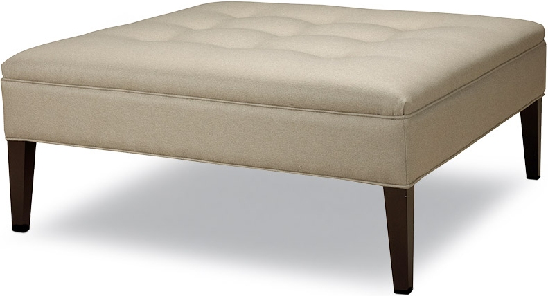 Grid tufted top. Tall, tapered legs. The square shape gives this ottoman a modern edge. Available in fabric or leather.Read More