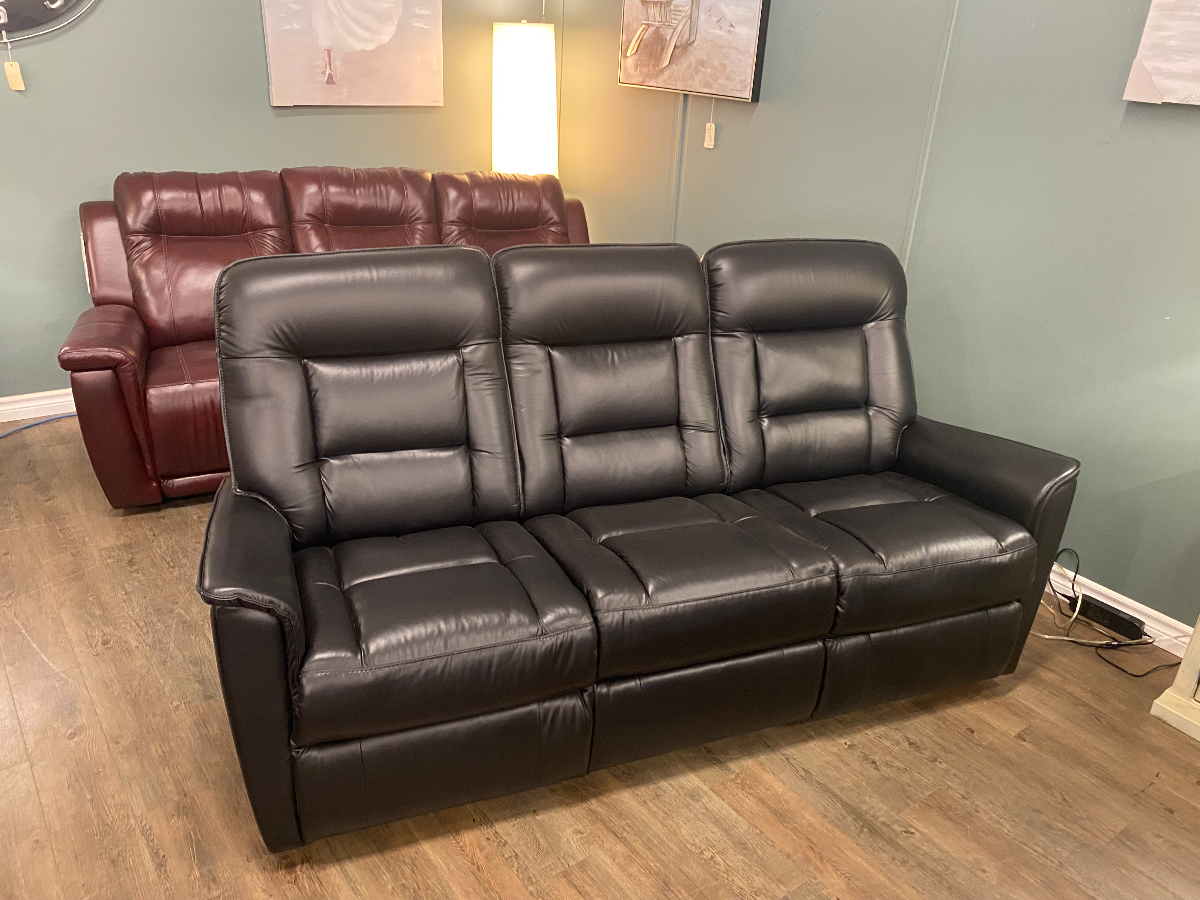 Power recline and power headrests operated by a brushed metal power switch with integrated USB charging