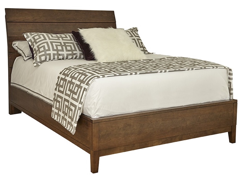 This bed is made in a transitional style and features an Autumn Wind finish with a wood plank headboard.