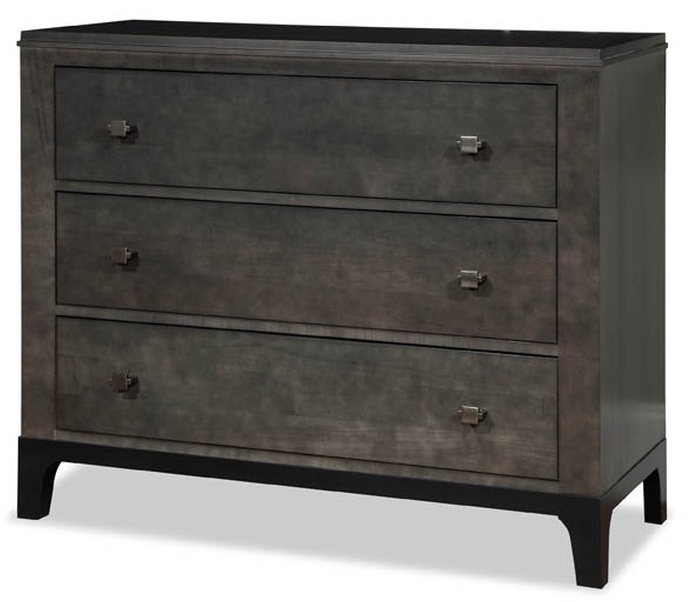 This bachelors chest is made in a contemporary style and features solid Maple wood in a Smoke finish with three drawers.