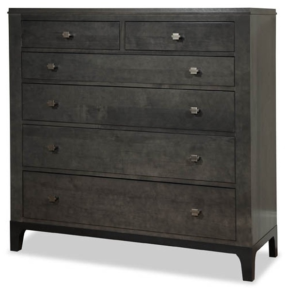 This dressing chest is made in a contemporary style and features solid Maple wood in a Smoke finish with six drawers.