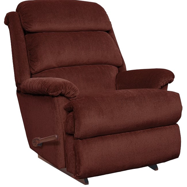 The tall pillow back features three separate cushions that can adjust to your body’s contours, while the chaise seat and padded flared arms provide the ultimate in comfort. Simply use the convenient handle on the outside arm to raise the leg rest for reading, relaxing or watching TV. When you’re not reclining, it’s a relaxing rocker with a smooth, graceful motion.