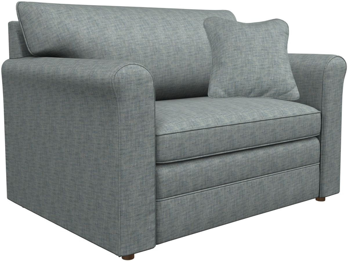 Turn any room into a stylish and functional guest room with the Leah Twin Sleep Chair. Its sleek profile is perfect for smaller spaces, yet it opens up to become a super comfortable twin bed, complete with a Supreme Comfort™ quilted innerspring mattress measuring 5.5” thick. By day, this sleeper is a true beauty too, with curving rolled arms, welt trim and a patented ComfortCore® cushion that provides optimum support for a long or short sit. Make it yours with your choice of fabrics and other available upgrades. Includes one 18” accent pillow.