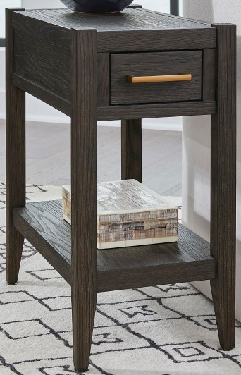 Introducing the stylish Manhattan Chairside End Table! Made with premium oak veneer and Baichun solids, this end table comes in a chic Espresso finish and is accented with vintage brass-finished hardware. With a spacious drawer and convenient bottom shelf, this table is as functional as it is fashionable.Read More