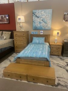 This collection is discontinued and available to purchase off our Orangeville floor. We currently have the Twin bed with under bed storage drawers, 5 drawer chest and one 2 drawer nightstand available.